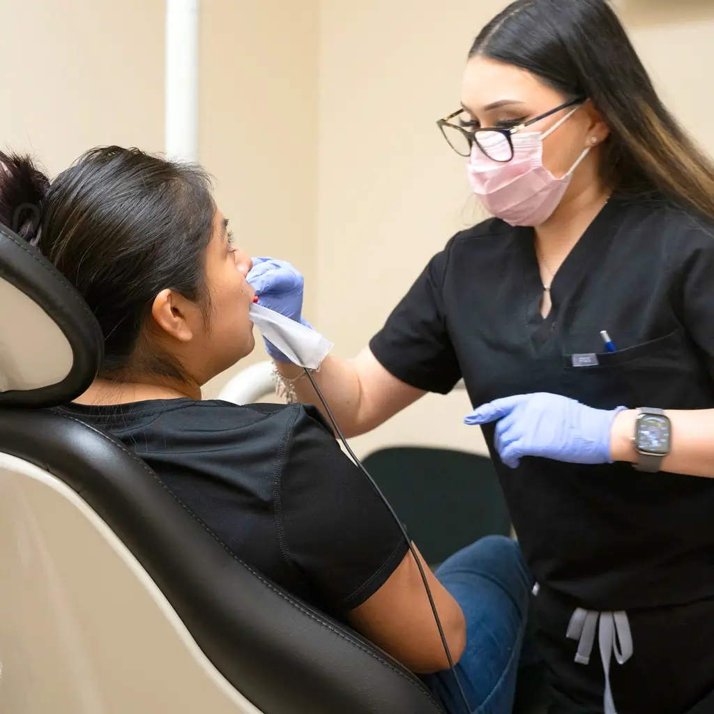 During your cleaning appointment, our hygienist gently removes plaque and tartar buildup in hard-to-reach areas, then polishes your teeth for that smooth, fresh finish.